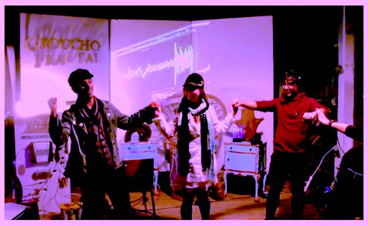 Groucho Fractal is a science comedy liberation-ecotech stage performance hosted by inventor/artist/engineer, Scott Beibin. The interactive multimedia show is powered by audience members pedaling a bicycle, and features demonstrations of Beibin’s inventions and other futuristic device prototypes.